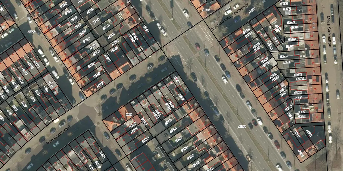 Het perceel waarop Van Goorstraat 2-c staat heeft een oppervlakte van 89 m². Dit is een klein perceel. De perceeloppervlakte wordt geregistreerd door het Kadaster. Gedetailleerde informatie over de maten van dit perceel kunt u vinden in het rapport Kadastrale kaart met maatvoering van Van Goorstraat 2-c.