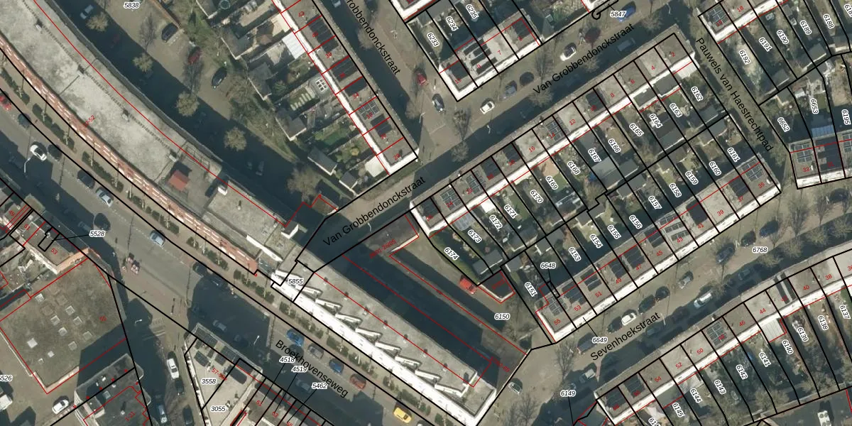 Het perceel waarop Van Grobbendonckstraat 26 staat heeft een oppervlakte van 123 m². Dit is een middelgroot perceel. De perceeloppervlakte wordt geregistreerd door het Kadaster. Gedetailleerde informatie over de maten van dit perceel kunt u vinden in het rapport Kadastrale kaart met maatvoering van Van Grobbendonckstraat 26.