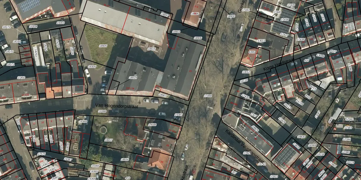 Het perceel waarop Van Hogendorpstraat 1-04 staat heeft een oppervlakte van 2099 m². Dit is een zeer groot perceel. De perceeloppervlakte wordt geregistreerd door het Kadaster. Gedetailleerde informatie over de maten van dit perceel kunt u vinden in het rapport Kadastrale kaart met maatvoering van Van Hogendorpstraat 1-04.