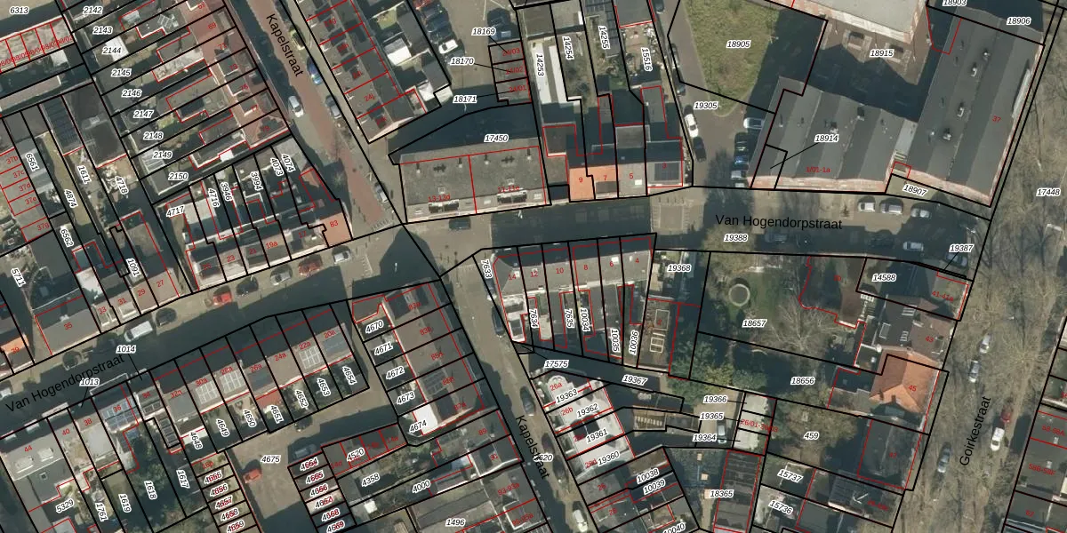 Van Hogendorpstraat 12 is gelegen op kadastraal perceel TBG01N7634. Deze kadastrale aanduiding is uniek en wordt gebruikt door het Kadaster om eigendomsrechten en andere zakelijke rechten vast te leggen. Het perceel maakt onderdeel uit van de kadastrale gemeente Tilburg.