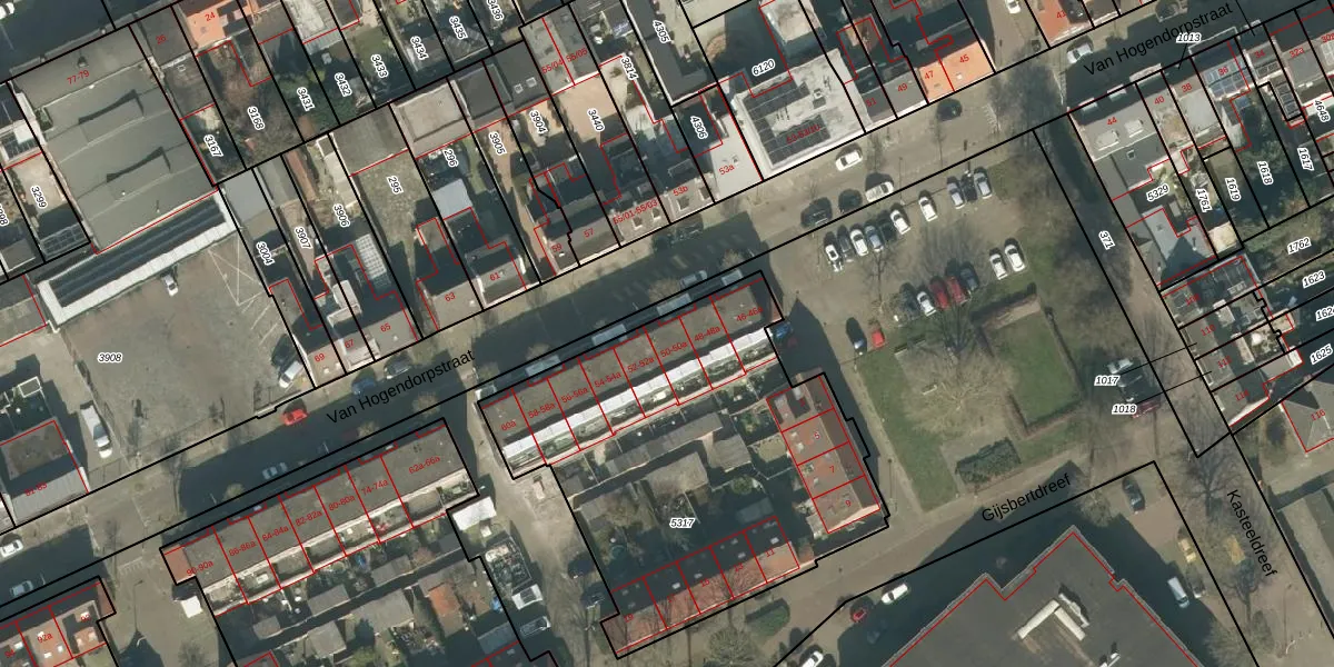 Van Hogendorpstraat 50 is gelegen op kadastraal perceel TBG01O5317. Deze kadastrale aanduiding is uniek en wordt gebruikt door het Kadaster om eigendomsrechten en andere zakelijke rechten vast te leggen. Het perceel maakt onderdeel uit van de kadastrale gemeente Tilburg.