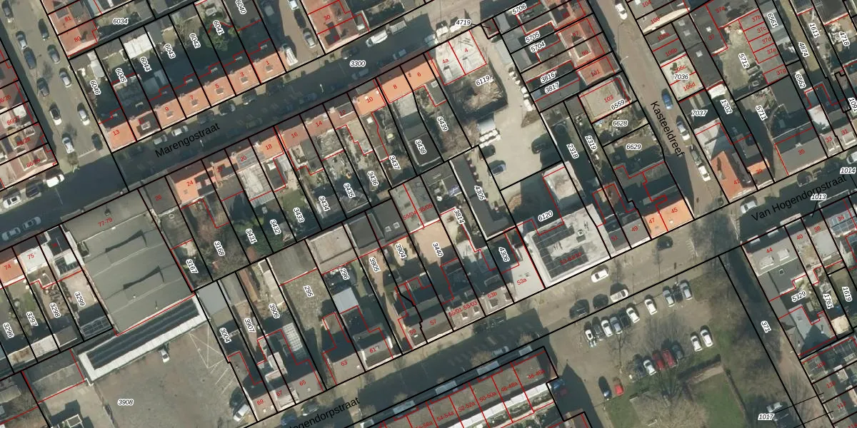 Het perceel waarop het adres ligt is TBG01-O-3440. De afkorting 'TBG01' staat voor kadastrale gemeente Tilburg. Het perceel is kleiner dan gemiddeld in Tilburg. Het perceel is 300 m² groot, terwijl het gemiddelde ligt op 1264,36 m². Het grootste perceel in de kadastrale gemeente is 87,4 ha. Het kleinste perceel heeft een oppervlakte van 0 m². Op het perceel zijn 5 adressen aanwezig. De huidige grenzen van het perceel zijn digitaal in de Basisregistratie Kadaster (BRK) geregistreerd op 13-03-2006.