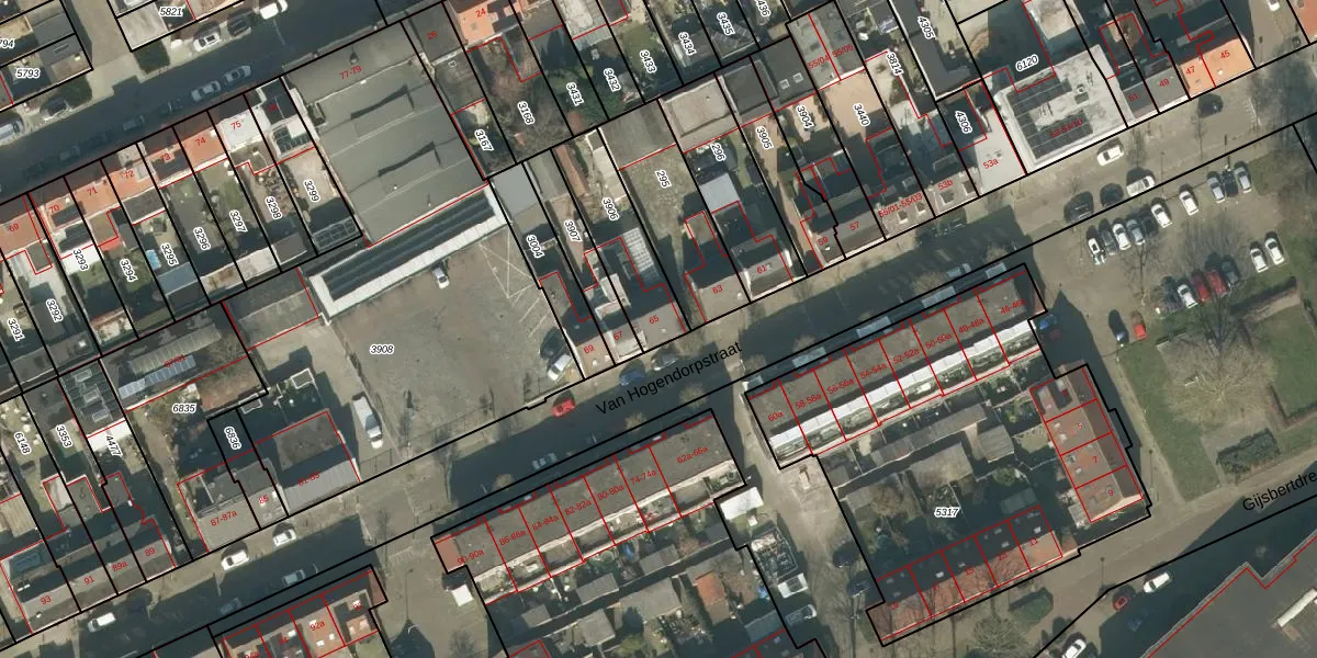 Van Hogendorpstraat 65 is gelegen op kadastraal perceel TBG01O3906. Deze kadastrale aanduiding is uniek en wordt gebruikt door het Kadaster om eigendomsrechten en andere zakelijke rechten vast te leggen. Het perceel maakt onderdeel uit van de kadastrale gemeente Tilburg.