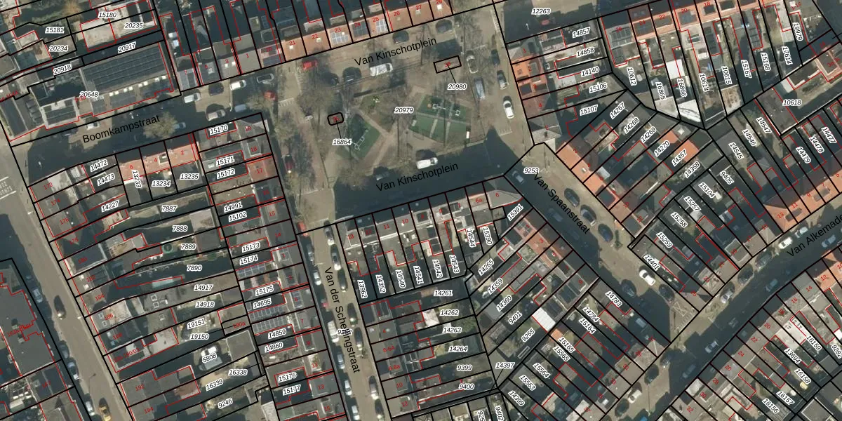 Van Kinschotplein 9 is gelegen op kadastraal perceel TBG01N14542. Deze kadastrale aanduiding is uniek en wordt gebruikt door het Kadaster om eigendomsrechten en andere zakelijke rechten vast te leggen. Het perceel maakt onderdeel uit van de kadastrale gemeente Tilburg.
