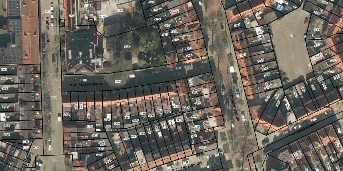 Het perceel waarop Van Maerlantstraat 4 staat heeft een oppervlakte van 103 m². Dit is een middelgroot perceel. De perceeloppervlakte wordt geregistreerd door het Kadaster. Gedetailleerde informatie over de maten van dit perceel kunt u vinden in het rapport Kadastrale kaart met maatvoering van Van Maerlantstraat 4.