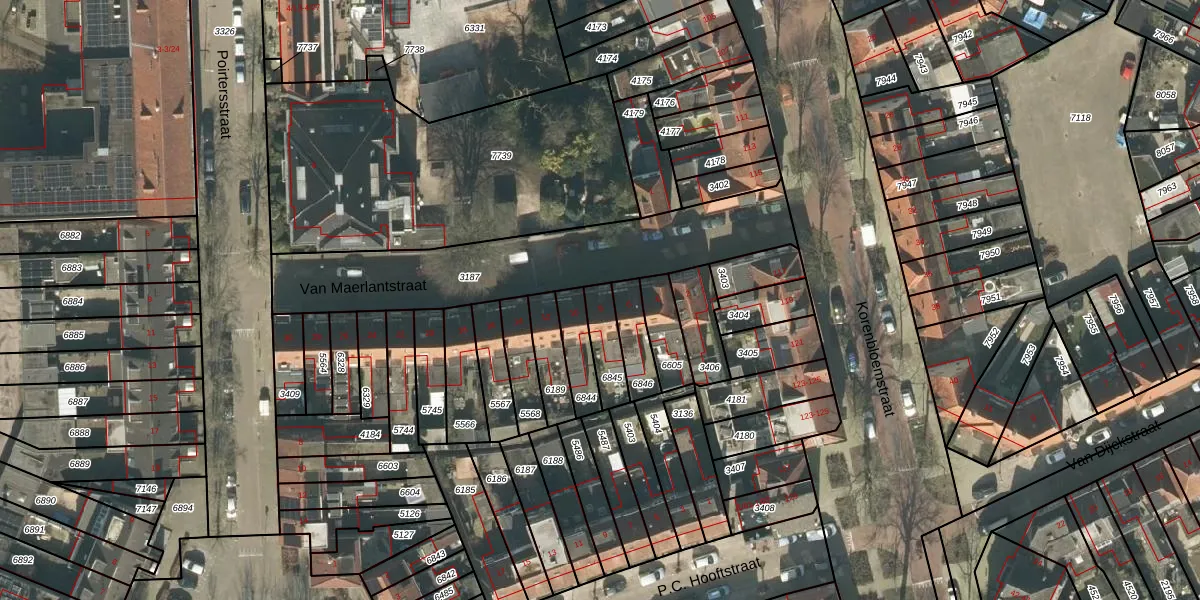 Het perceel waarop Van Maerlantstraat 8 staat heeft een oppervlakte van 99 m². Dit is een klein perceel. De perceeloppervlakte wordt geregistreerd door het Kadaster. Gedetailleerde informatie over de maten van dit perceel kunt u vinden in het rapport Kadastrale kaart met maatvoering van Van Maerlantstraat 8.