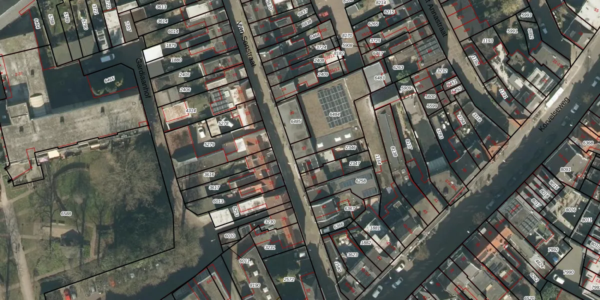 Gebruik de zoekbalk of klik op een perceel voor informatie over de adressen binnen dit perceel.