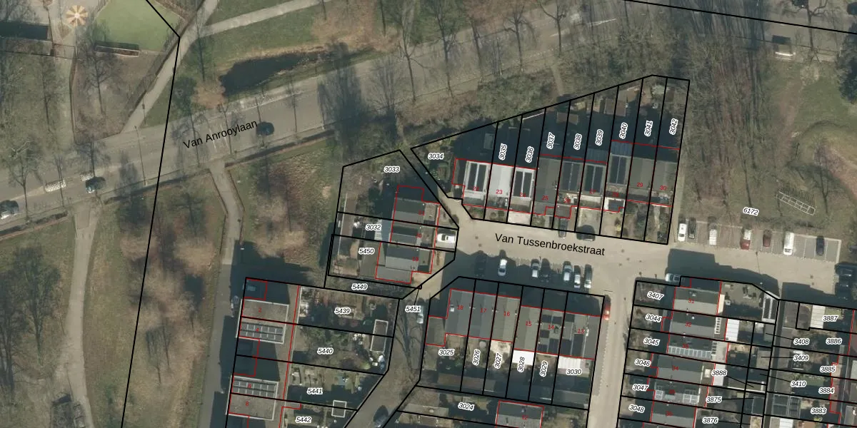 Van Tussenbroekstraat 21 is gelegen op kadastraal perceel TBG01S3033. Deze kadastrale aanduiding is uniek en wordt gebruikt door het Kadaster om eigendomsrechten en andere zakelijke rechten vast te leggen. Het perceel maakt onderdeel uit van de kadastrale gemeente Tilburg.