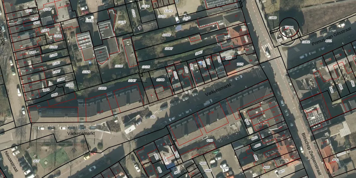 Varkensmarkt 6 is gelegen op kadastraal perceel TBG01M11022. Deze kadastrale aanduiding is uniek en wordt gebruikt door het Kadaster om eigendomsrechten en andere zakelijke rechten vast te leggen. Het perceel maakt onderdeel uit van de kadastrale gemeente Tilburg.