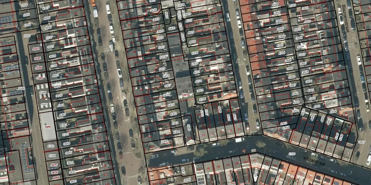 Het perceel waarop Vazalstraat 29-a staat heeft een oppervlakte van 415 m². Dit is een groot perceel. De perceeloppervlakte wordt geregistreerd door het Kadaster. Gedetailleerde informatie over de maten van dit perceel kunt u vinden in het rapport Kadastrale kaart met maatvoering van Vazalstraat 29-a.