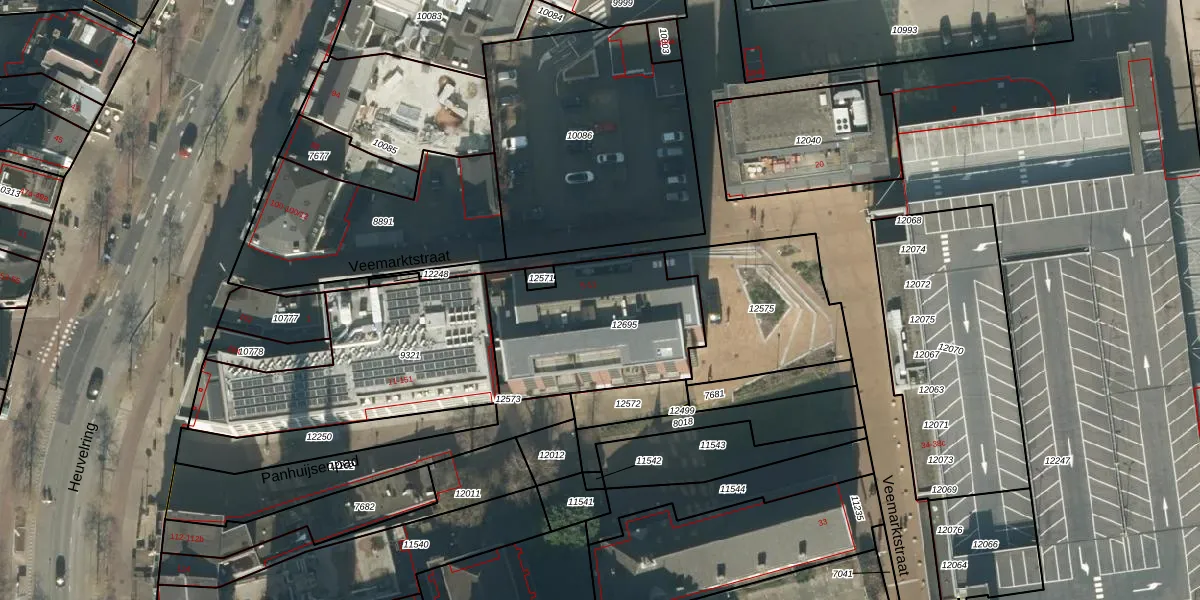 Veemarktstraat 9-40 is gelegen op kadastraal perceel TBG01M12695. Deze kadastrale aanduiding is uniek en wordt gebruikt door het Kadaster om eigendomsrechten en andere zakelijke rechten vast te leggen. Het perceel maakt onderdeel uit van de kadastrale gemeente Tilburg.