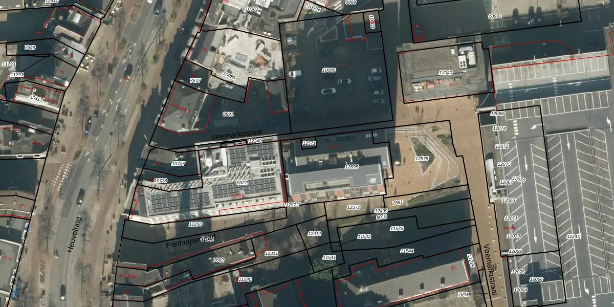 Veemarktstraat 9-43 is gelegen op kadastraal perceel TBG01M12695. Deze kadastrale aanduiding is uniek en wordt gebruikt door het Kadaster om eigendomsrechten en andere zakelijke rechten vast te leggen. Het perceel maakt onderdeel uit van de kadastrale gemeente Tilburg.