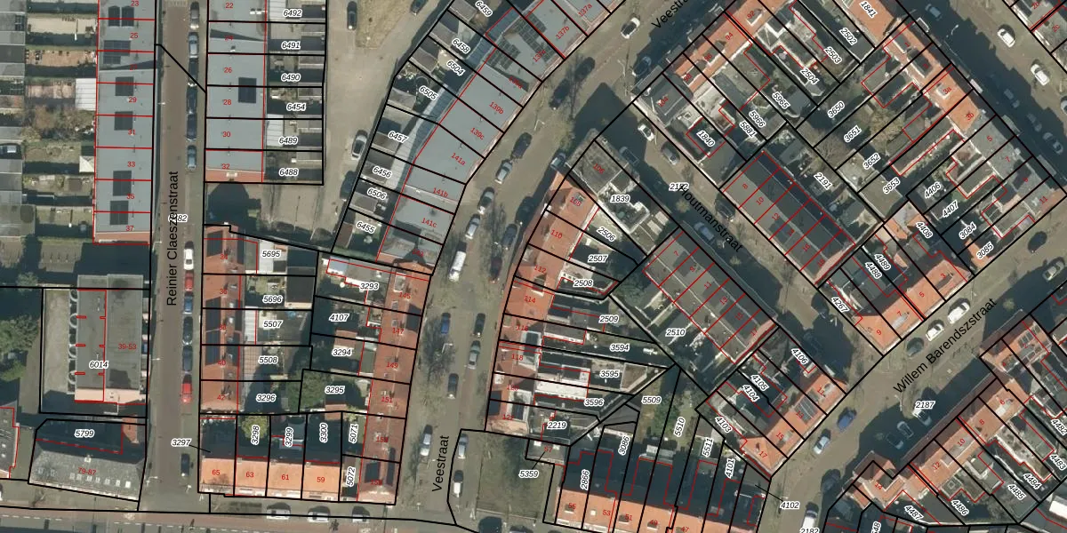 Het perceel waarop Veestraat 112 staat heeft een oppervlakte van 102 m². Dit is een middelgroot perceel. De perceeloppervlakte wordt geregistreerd door het Kadaster. Gedetailleerde informatie over de maten van dit perceel kunt u vinden in het rapport Kadastrale kaart met maatvoering van Veestraat 112.