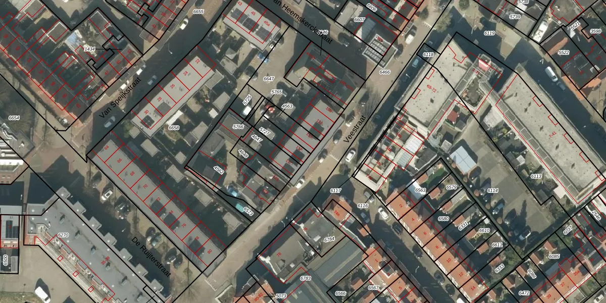 Het perceel waarop Veestraat 115 staat heeft een oppervlakte van 101 m². Dit is een middelgroot perceel. De perceeloppervlakte wordt geregistreerd door het Kadaster. Gedetailleerde informatie over de maten van dit perceel kunt u vinden in het rapport Kadastrale kaart met maatvoering van Veestraat 115.