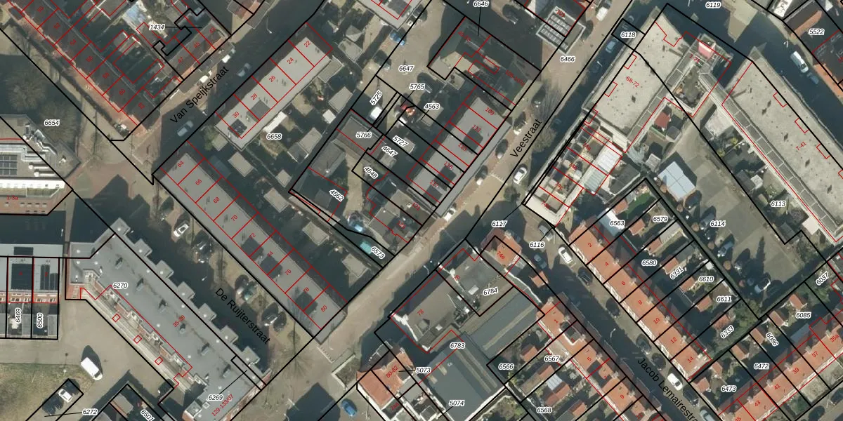 Het perceel waarop Veestraat 121 staat heeft een oppervlakte van 117 m². Dit is een middelgroot perceel. De perceeloppervlakte wordt geregistreerd door het Kadaster. Gedetailleerde informatie over de maten van dit perceel kunt u vinden in het rapport Kadastrale kaart met maatvoering van Veestraat 121.