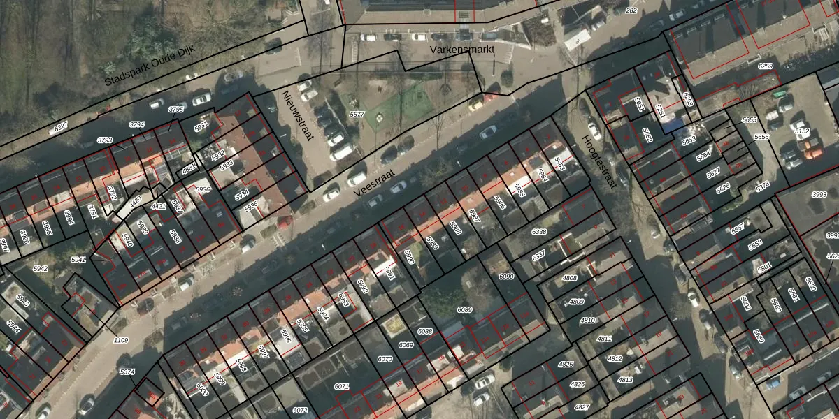 Veestraat 14 is gelegen op kadastraal perceel TBG01R5989. Deze kadastrale aanduiding is uniek en wordt gebruikt door het Kadaster om eigendomsrechten en andere zakelijke rechten vast te leggen. Het perceel maakt onderdeel uit van de kadastrale gemeente Tilburg.