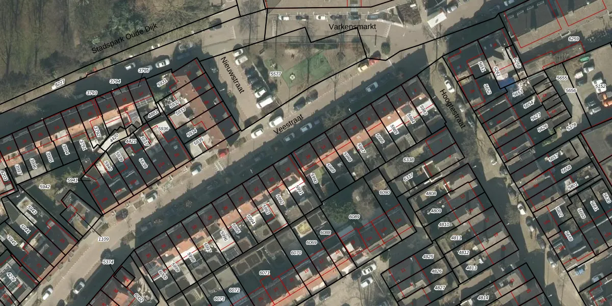 Het perceel waarop Veestraat 16 staat heeft een oppervlakte van 134 m². Dit is een middelgroot perceel. De perceeloppervlakte wordt geregistreerd door het Kadaster. Gedetailleerde informatie over de maten van dit perceel kunt u vinden in het rapport Kadastrale kaart met maatvoering van Veestraat 16.