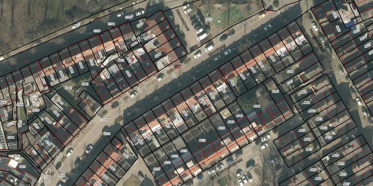 Het perceel waarop Veestraat 24 staat heeft een oppervlakte van 115 m². Dit is een middelgroot perceel. De perceeloppervlakte wordt geregistreerd door het Kadaster. Gedetailleerde informatie over de maten van dit perceel kunt u vinden in het rapport Kadastrale kaart met maatvoering van Veestraat 24.