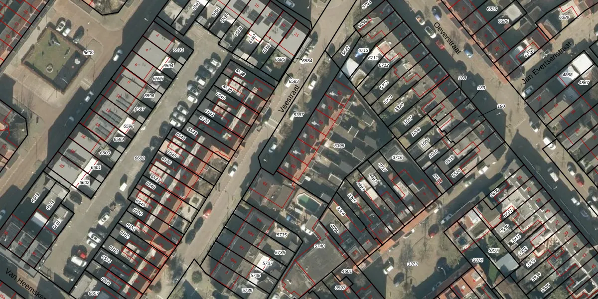 Het perceel waarop Veestraat 58 staat heeft een oppervlakte van 830 m². Dit is een groot perceel. De perceeloppervlakte wordt geregistreerd door het Kadaster. Gedetailleerde informatie over de maten van dit perceel kunt u vinden in het rapport Kadastrale kaart met maatvoering van Veestraat 58.