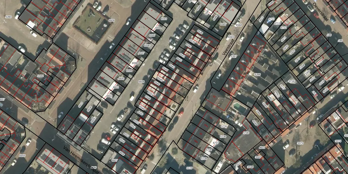Veestraat 79 is gelegen op kadastraal perceel TBG01R6545. Deze kadastrale aanduiding is uniek en wordt gebruikt door het Kadaster om eigendomsrechten en andere zakelijke rechten vast te leggen. Het perceel maakt onderdeel uit van de kadastrale gemeente Tilburg.