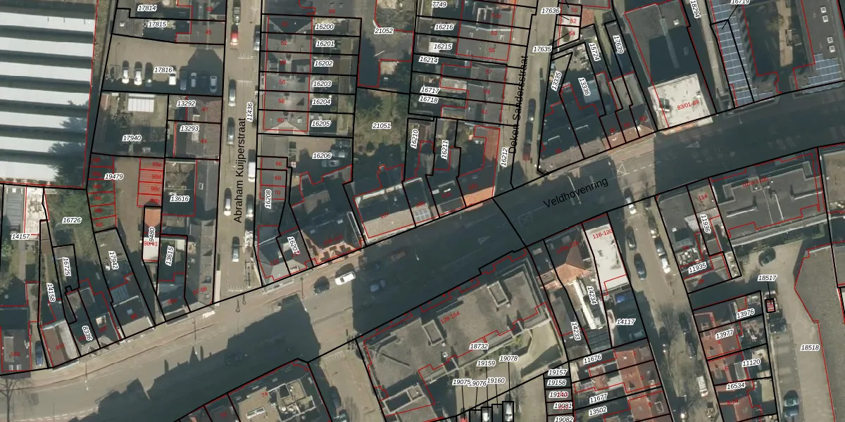 Veldhovenring 105 is gelegen op kadastraal perceel TBG01N16210. Deze kadastrale aanduiding is uniek en wordt gebruikt door het Kadaster om eigendomsrechten en andere zakelijke rechten vast te leggen. Het perceel maakt onderdeel uit van de kadastrale gemeente Tilburg.
