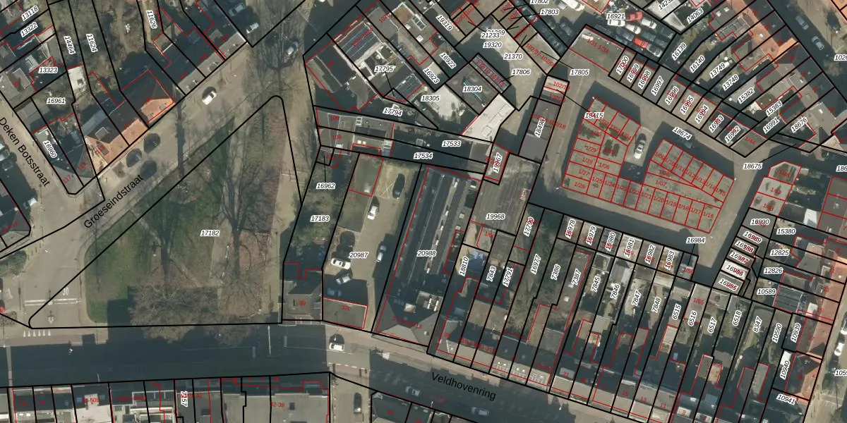 Veldhovenring 37-10 is gelegen op kadastraal perceel TBG01N20988. Deze kadastrale aanduiding is uniek en wordt gebruikt door het Kadaster om eigendomsrechten en andere zakelijke rechten vast te leggen. Het perceel maakt onderdeel uit van de kadastrale gemeente Tilburg.
