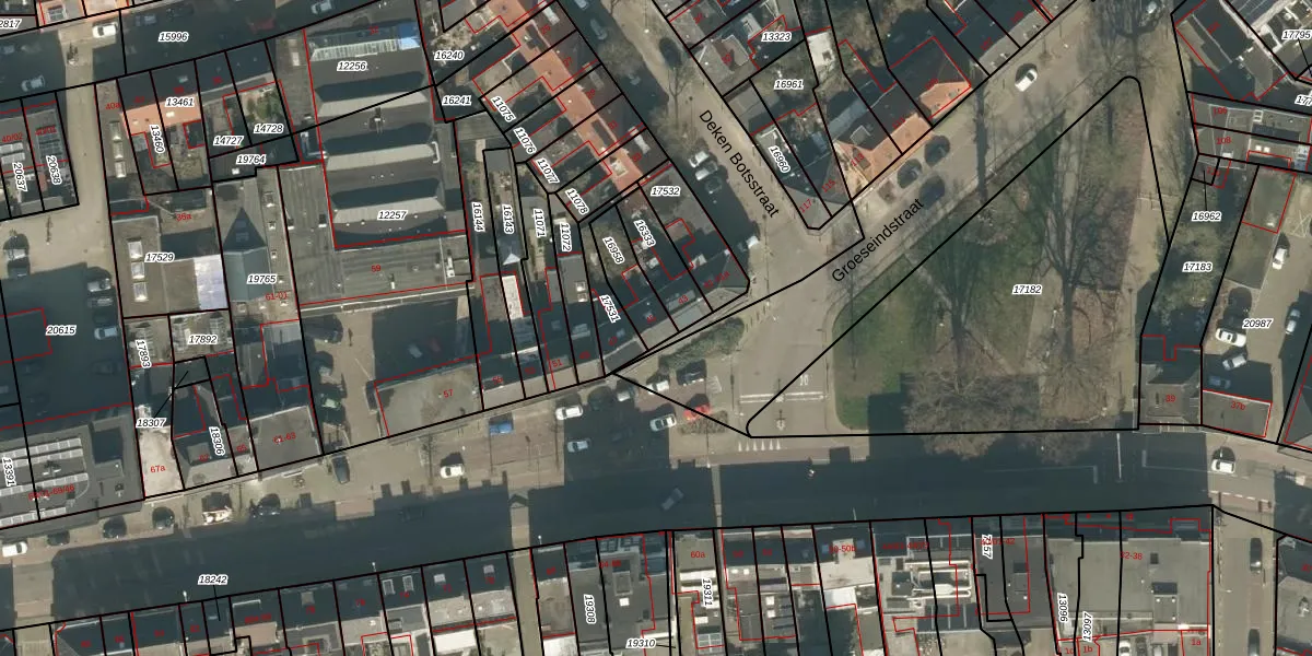 Het adres is gelegen op perceel 16958 in de sectie N en de kadastrale gemeente Tilburg. De kadastrale aanduiding is aldus TBG01-N-16958. Het perceel is kleiner dan gemiddeld in Tilburg. Het perceel is 115 m² groot, terwijl het gemiddelde ligt op 1264,33 m². De grootste perceeloppervlakte in de kadastrale gemeente is 87,4 ha. De kleinste oppervlakte bedraagt 0 m². Op het perceel bevinden zich geen andere adressen. De huidige grenzen van het perceel zijn digitaal in de Basisregistratie Kadaster (BRK) geregistreerd op 23-02-2006.