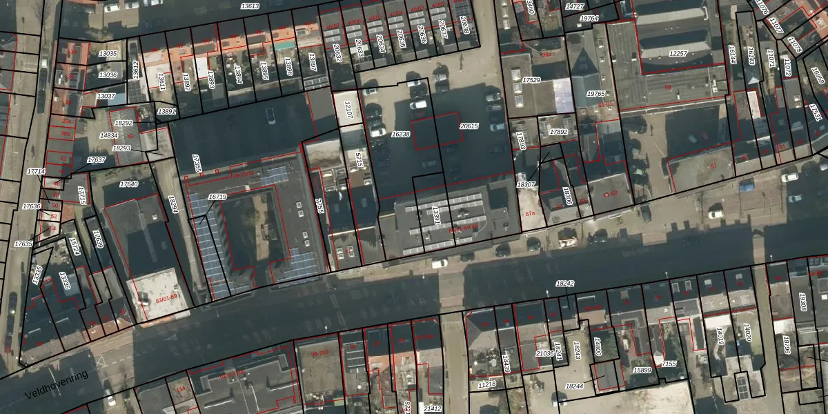 Het adres is gelegen op perceel 16238 in de sectie N en de kadastrale gemeente Tilburg. De kadastrale aanduiding is aldus TBG01-N-16238. Het perceel is 561 m² groot. Dat is kleiner dan de gemiddelde perceeloppervlakte in Tilburg, dat op 1264,33 m² ligt. Het grootste perceel in de kadastrale gemeente is 87,4 ha. Het kleinste perceel heeft een oppervlakte van 0 m². Op het perceel liggen in totaal 13 adressen. De huidige grenzen van het perceel zijn digitaal in de Basisregistratie Kadaster (BRK) geregistreerd op 18-10-2016.