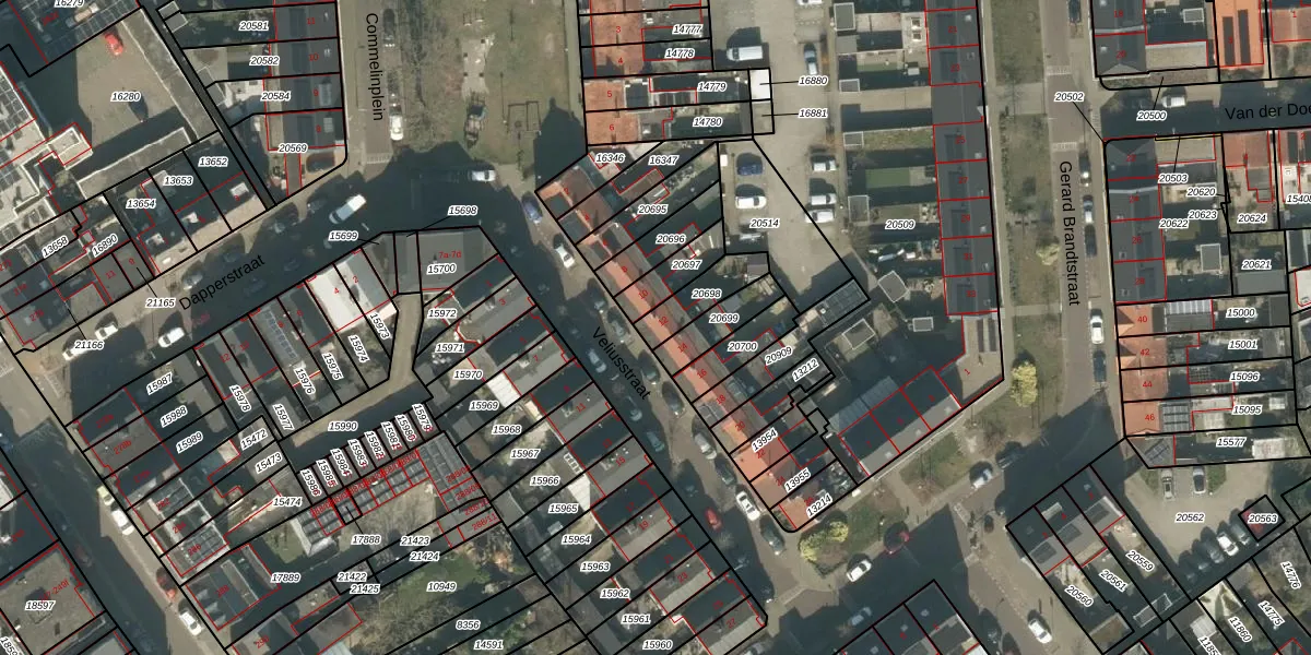 Het perceel waarop Veliusstraat 12 staat heeft een oppervlakte van 112 m². Dit is een middelgroot perceel. De perceeloppervlakte wordt geregistreerd door het Kadaster. Gedetailleerde informatie over de maten van dit perceel kunt u vinden in het rapport Kadastrale kaart met maatvoering van Veliusstraat 12.
