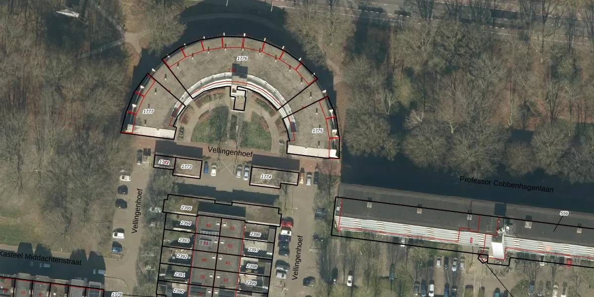 Vellingenhoef 14 is gelegen op kadastraal perceel TBG01AB1775. Deze kadastrale aanduiding is uniek en wordt gebruikt door het Kadaster om eigendomsrechten en andere zakelijke rechten vast te leggen. Het perceel maakt onderdeel uit van de kadastrale gemeente Tilburg.