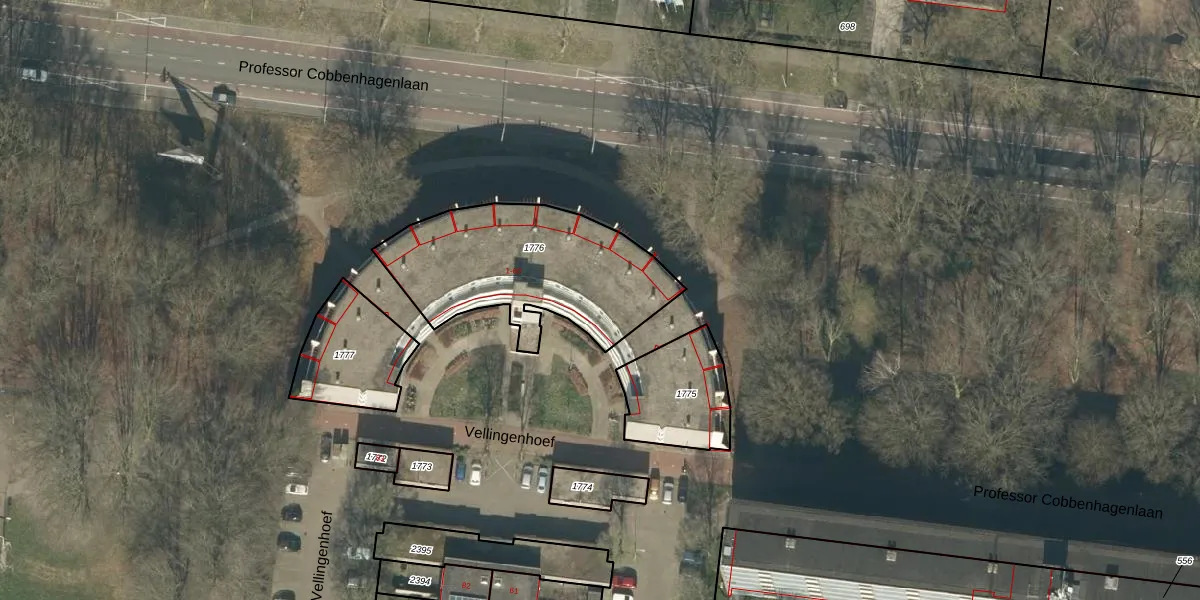 Het perceel waarop Vellingenhoef 24 staat heeft een oppervlakte van 778 m². Dit is een groot perceel. De perceeloppervlakte wordt geregistreerd door het Kadaster. Gedetailleerde informatie over de maten van dit perceel kunt u vinden in het rapport Kadastrale kaart met maatvoering van Vellingenhoef 24.