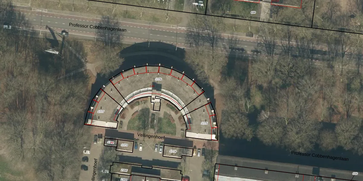 Het perceel waarop Vellingenhoef 39 staat heeft een oppervlakte van 778 m². Dit is een groot perceel. De perceeloppervlakte wordt geregistreerd door het Kadaster. Gedetailleerde informatie over de maten van dit perceel kunt u vinden in het rapport Kadastrale kaart met maatvoering van Vellingenhoef 39.