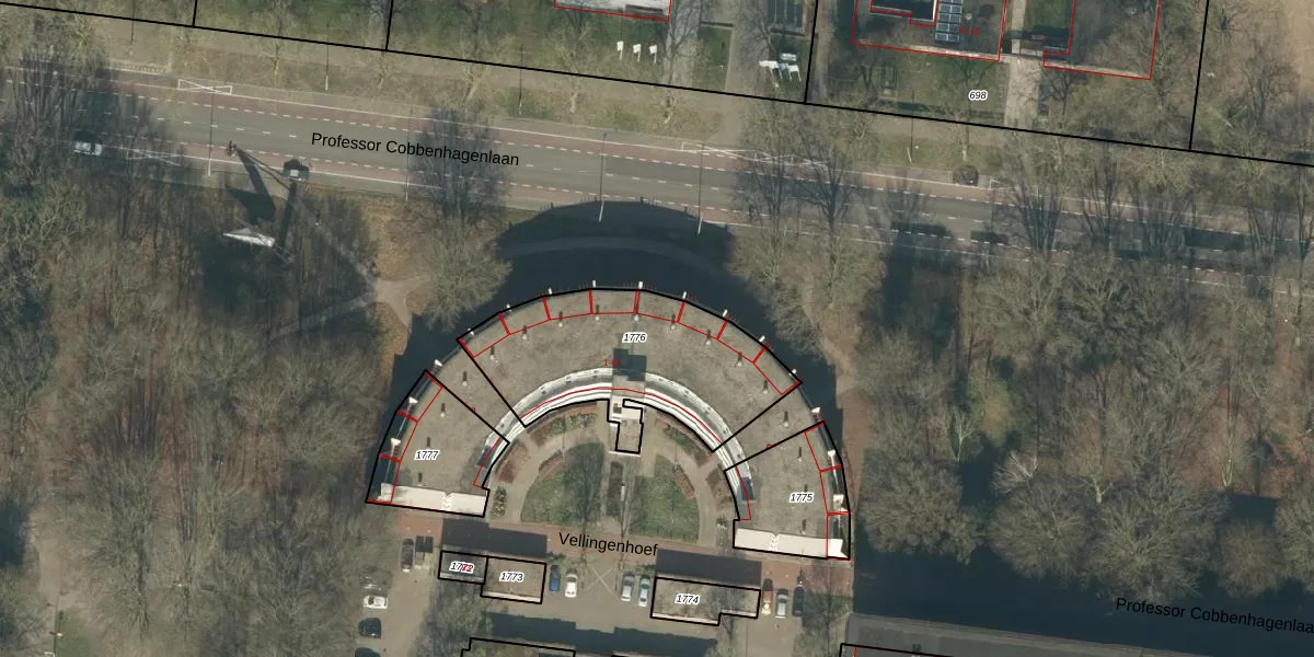 Het perceel waarop Vellingenhoef 53 staat heeft een oppervlakte van 778 m². Dit is een groot perceel. De perceeloppervlakte wordt geregistreerd door het Kadaster. Gedetailleerde informatie over de maten van dit perceel kunt u vinden in het rapport Kadastrale kaart met maatvoering van Vellingenhoef 53.