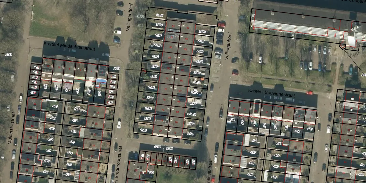 Vellingenhoef 67 is gelegen op kadastraal perceel TBG01AB2402. Deze kadastrale aanduiding is uniek en wordt gebruikt door het Kadaster om eigendomsrechten en andere zakelijke rechten vast te leggen. Het perceel maakt onderdeel uit van de kadastrale gemeente Tilburg.