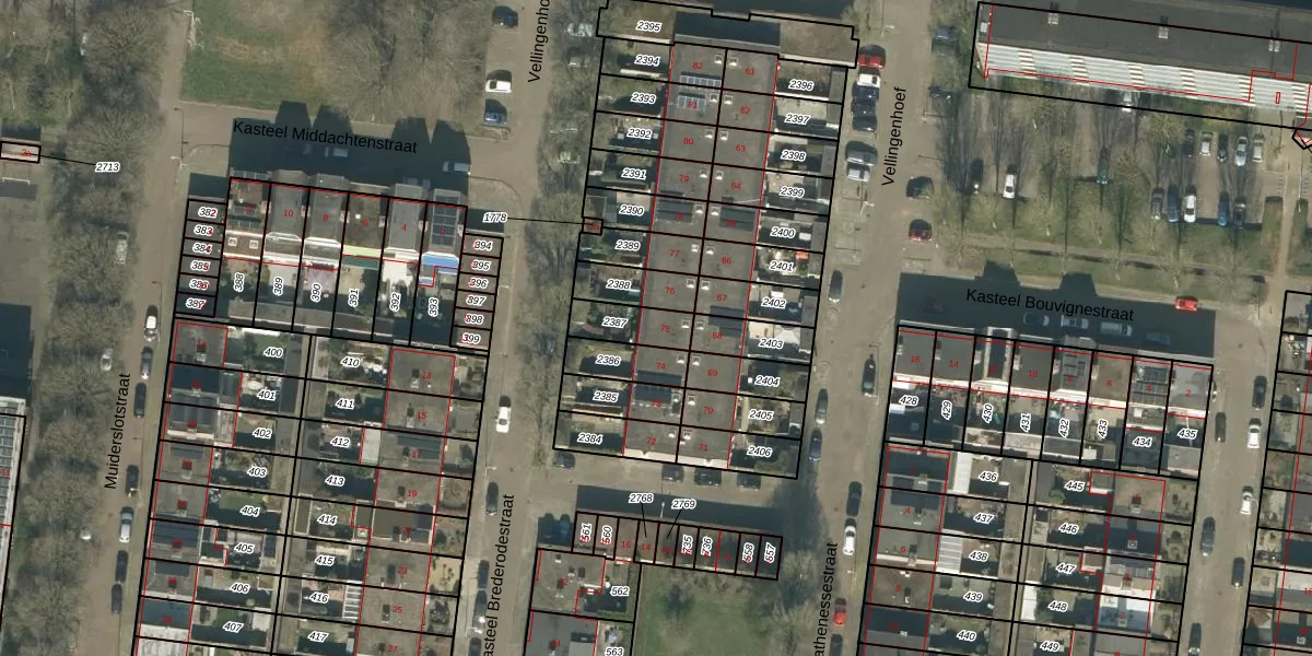 Vellingenhoef 75 is gelegen op kadastraal perceel TBG01AB2387. Deze kadastrale aanduiding is uniek en wordt gebruikt door het Kadaster om eigendomsrechten en andere zakelijke rechten vast te leggen. Het perceel maakt onderdeel uit van de kadastrale gemeente Tilburg.