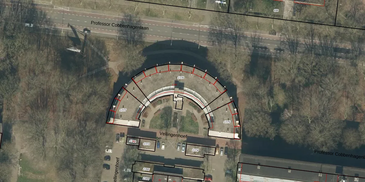 Het perceel waarop Vellingenhoef 8 staat heeft een oppervlakte van 778 m². Dit is een groot perceel. De perceeloppervlakte wordt geregistreerd door het Kadaster. Gedetailleerde informatie over de maten van dit perceel kunt u vinden in het rapport Kadastrale kaart met maatvoering van Vellingenhoef 8.