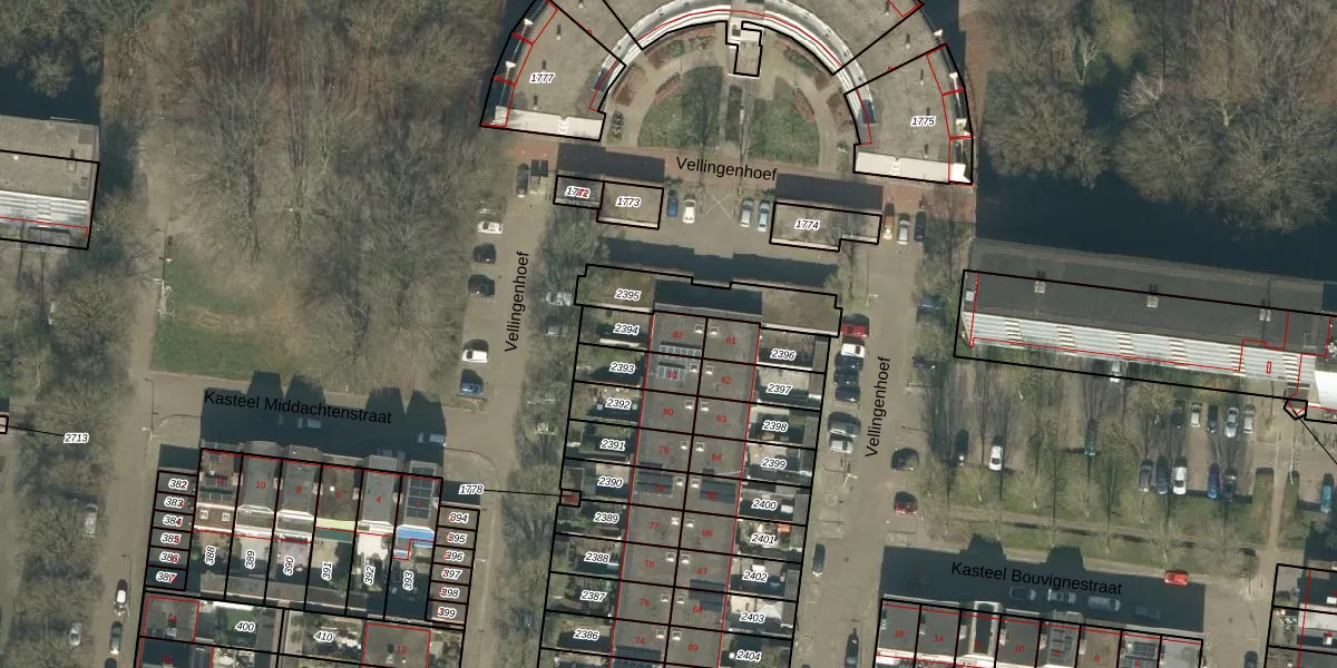Vellingenhoef 82 is gelegen op kadastraal perceel TBG01AB2394. Deze kadastrale aanduiding is uniek en wordt gebruikt door het Kadaster om eigendomsrechten en andere zakelijke rechten vast te leggen. Het perceel maakt onderdeel uit van de kadastrale gemeente Tilburg.