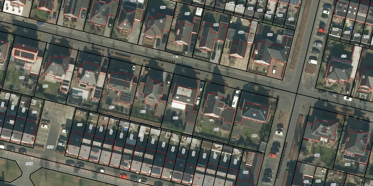 Het perceel waarop Velpstraat 14 staat heeft een oppervlakte van 526 m². Dit is een groot perceel. De perceeloppervlakte wordt geregistreerd door het Kadaster. Gedetailleerde informatie over de maten van dit perceel kunt u vinden in het rapport Kadastrale kaart met maatvoering van Velpstraat 14.