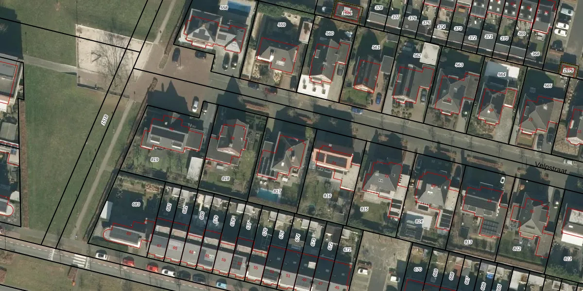 Het perceel waarop Velpstraat 26 staat heeft een oppervlakte van 526 m². Dit is een groot perceel. De perceeloppervlakte wordt geregistreerd door het Kadaster. Gedetailleerde informatie over de maten van dit perceel kunt u vinden in het rapport Kadastrale kaart met maatvoering van Velpstraat 26.