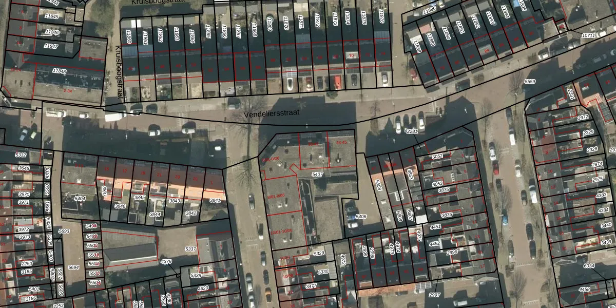 Vendeliersstraat 37 is gelegen op kadastraal perceel TBG01R5407. Deze kadastrale aanduiding is uniek en wordt gebruikt door het Kadaster om eigendomsrechten en andere zakelijke rechten vast te leggen. Het perceel maakt onderdeel uit van de kadastrale gemeente Tilburg.