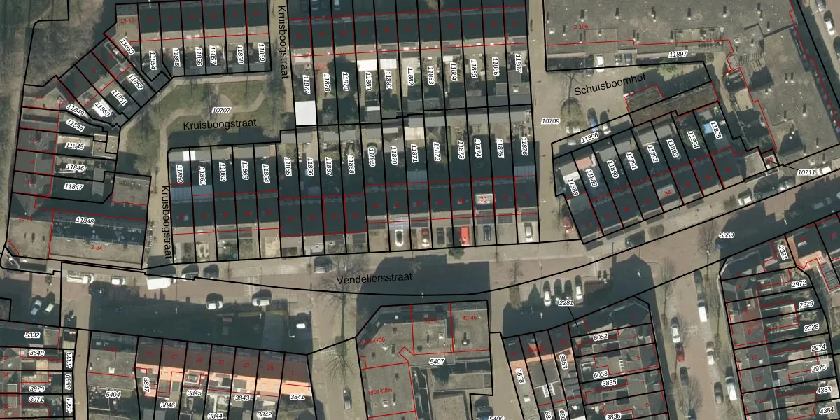 Vendeliersstraat 64 is gelegen op kadastraal perceel TBG01M11871. Deze kadastrale aanduiding is uniek en wordt gebruikt door het Kadaster om eigendomsrechten en andere zakelijke rechten vast te leggen. Het perceel maakt onderdeel uit van de kadastrale gemeente Tilburg.