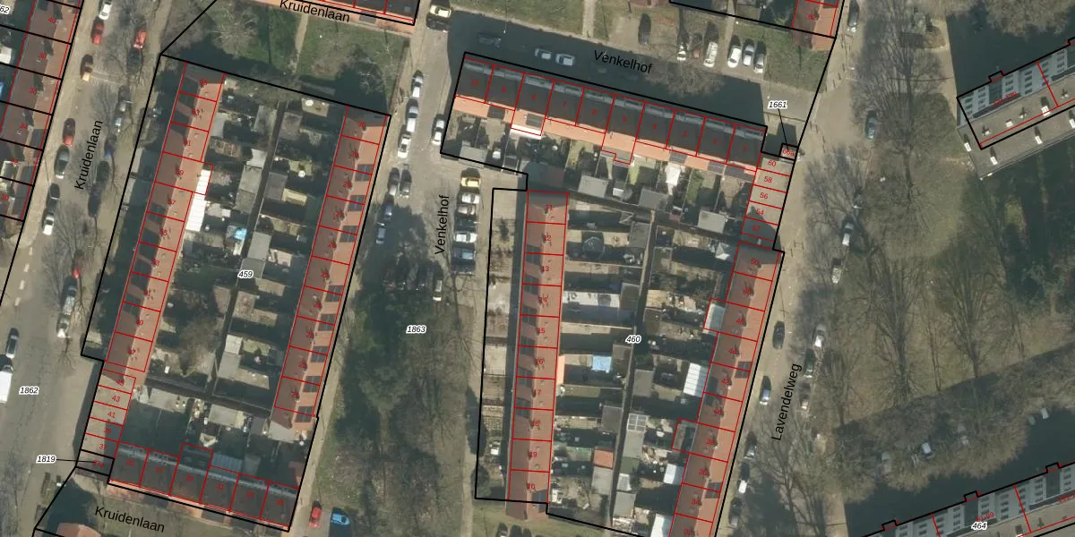 Venkelhof 13 is gelegen op kadastraal perceel TBG01AD460. Deze kadastrale aanduiding is uniek en wordt gebruikt door het Kadaster om eigendomsrechten en andere zakelijke rechten vast te leggen. Het perceel maakt onderdeel uit van de kadastrale gemeente Tilburg.