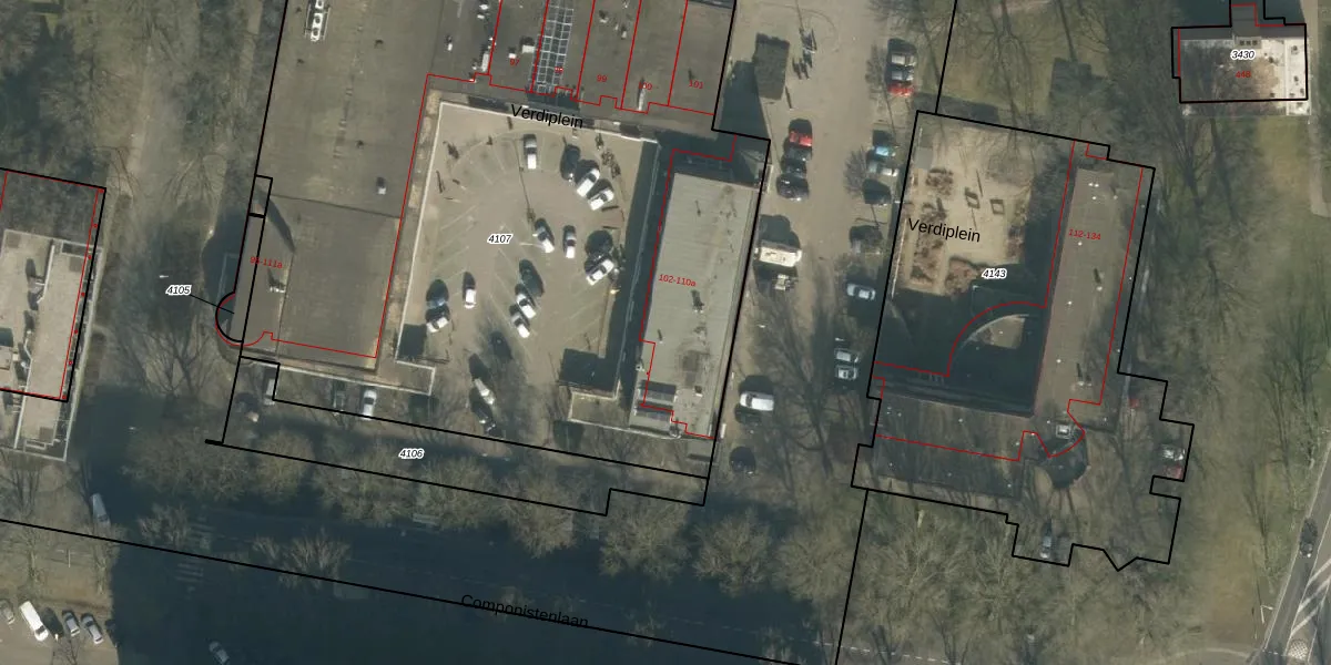 Het perceel waarop Verdiplein 105 staat heeft een oppervlakte van 5147 m². Dit is een zeer groot perceel. De perceeloppervlakte wordt geregistreerd door het Kadaster. Gedetailleerde informatie over de maten van dit perceel kunt u vinden in het rapport Kadastrale kaart met maatvoering van Verdiplein 105.