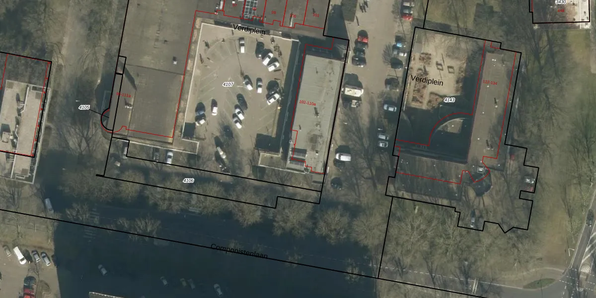 Het perceel waarop Verdiplein 110-a staat heeft een oppervlakte van 5147 m². Dit is een zeer groot perceel. De perceeloppervlakte wordt geregistreerd door het Kadaster. Gedetailleerde informatie over de maten van dit perceel kunt u vinden in het rapport Kadastrale kaart met maatvoering van Verdiplein 110-a.