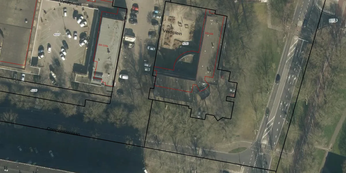 Het perceel waarop Verdiplein 128 staat heeft een oppervlakte van 2420 m². Dit is een zeer groot perceel. De perceeloppervlakte wordt geregistreerd door het Kadaster. Gedetailleerde informatie over de maten van dit perceel kunt u vinden in het rapport Kadastrale kaart met maatvoering van Verdiplein 128.