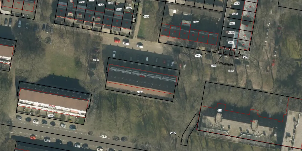 Verdiplein 54 is gelegen op kadastraal perceel TBG01S1667. Deze kadastrale aanduiding is uniek en wordt gebruikt door het Kadaster om eigendomsrechten en andere zakelijke rechten vast te leggen. Het perceel maakt onderdeel uit van de kadastrale gemeente Tilburg.