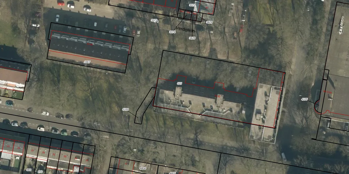 Het perceel waarop Verdiplein 70-a staat heeft een oppervlakte van 2334 m². Dit is een zeer groot perceel. De perceeloppervlakte wordt geregistreerd door het Kadaster. Gedetailleerde informatie over de maten van dit perceel kunt u vinden in het rapport Kadastrale kaart met maatvoering van Verdiplein 70-a.