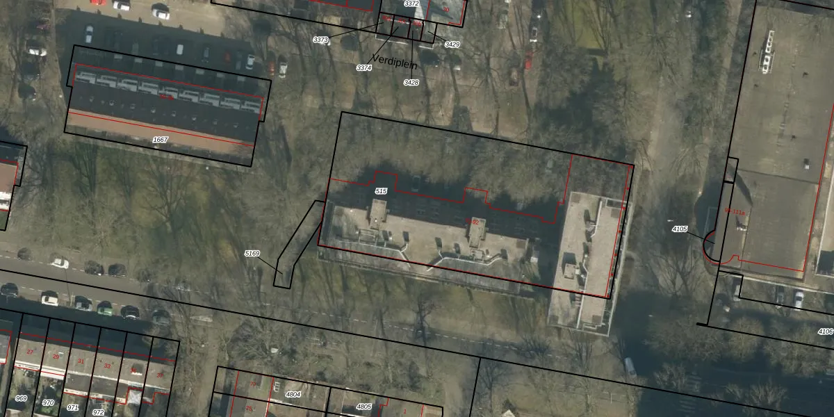 Verdiplein 74 is gelegen op kadastraal perceel TBG01S515. Deze kadastrale aanduiding is uniek en wordt gebruikt door het Kadaster om eigendomsrechten en andere zakelijke rechten vast te leggen. Het perceel maakt onderdeel uit van de kadastrale gemeente Tilburg.