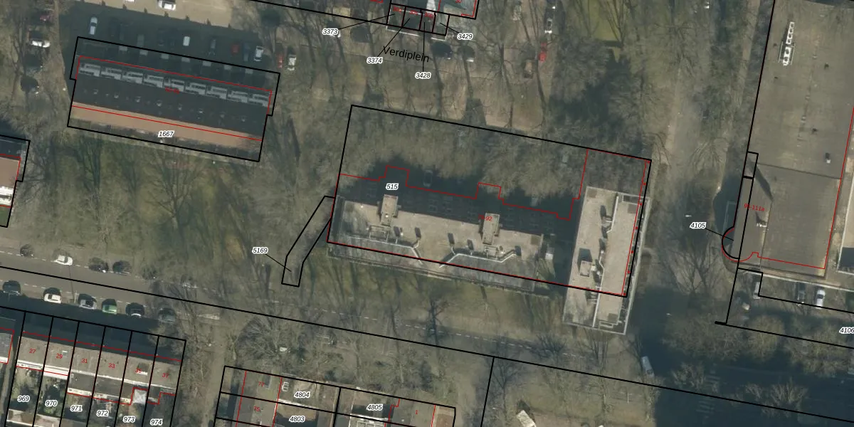 Verdiplein 75 is gelegen op kadastraal perceel TBG01S515. Deze kadastrale aanduiding is uniek en wordt gebruikt door het Kadaster om eigendomsrechten en andere zakelijke rechten vast te leggen. Het perceel maakt onderdeel uit van de kadastrale gemeente Tilburg.