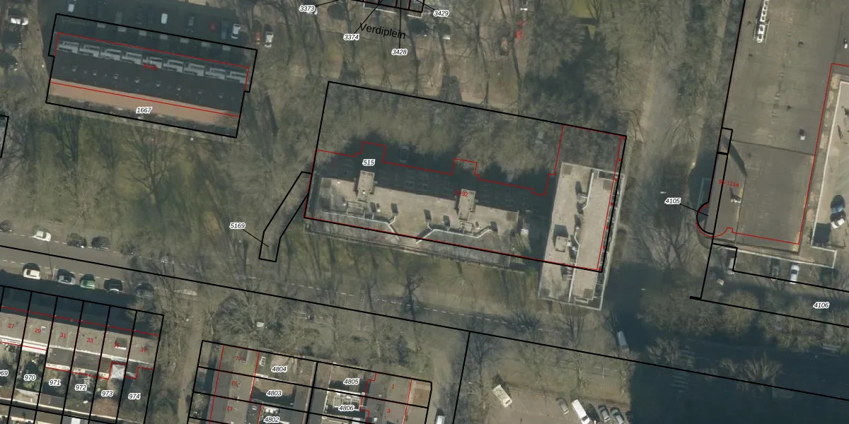 Het perceel waarop Verdiplein 77-b staat heeft een oppervlakte van 2334 m². Dit is een zeer groot perceel. De perceeloppervlakte wordt geregistreerd door het Kadaster. Gedetailleerde informatie over de maten van dit perceel kunt u vinden in het rapport Kadastrale kaart met maatvoering van Verdiplein 77-b.